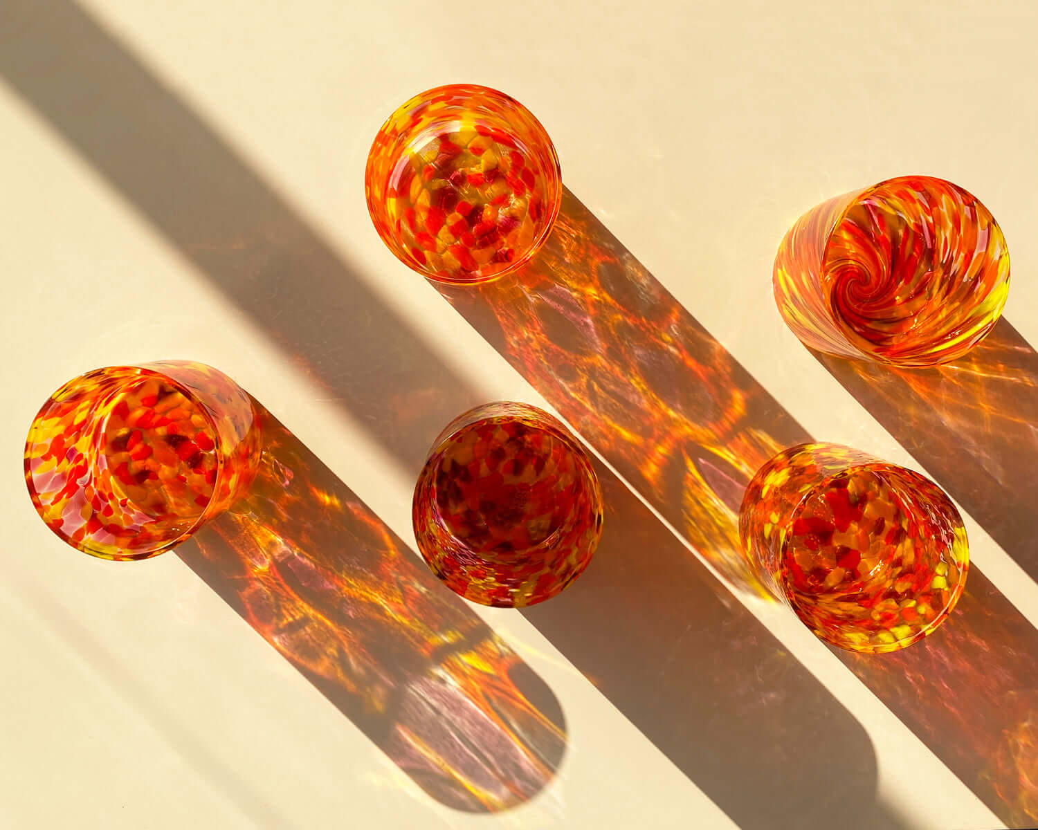 A bright collection of handmade drinkers that will bring a playful pop to your next happy hour.