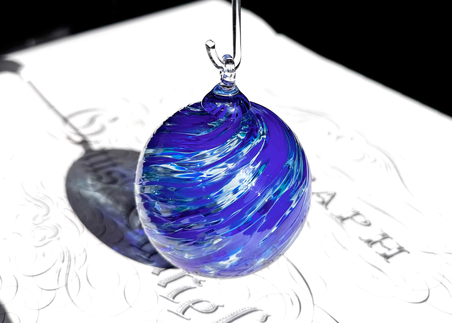 Traditionally a favorite stone of priests and kings, the sapphire symbolizeswisdom, virtue, and good fortune. Our diamond facet ornaments are handmade by artisan glassblowers to reflect the luster of the brilliant blue gemstone.